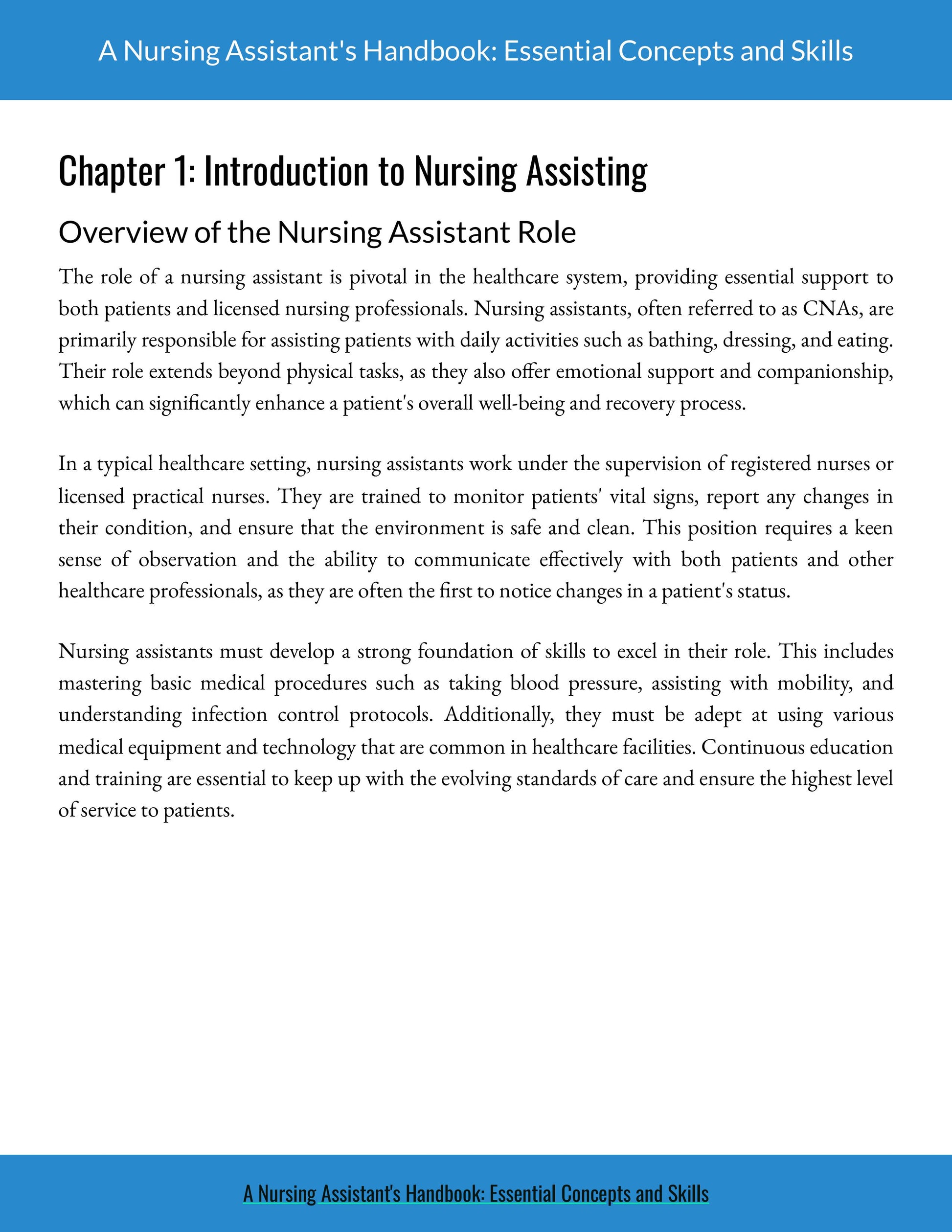 Chapter 1: Introduction to Nursing Assisting – Understand your role and responsibilities as a CNA